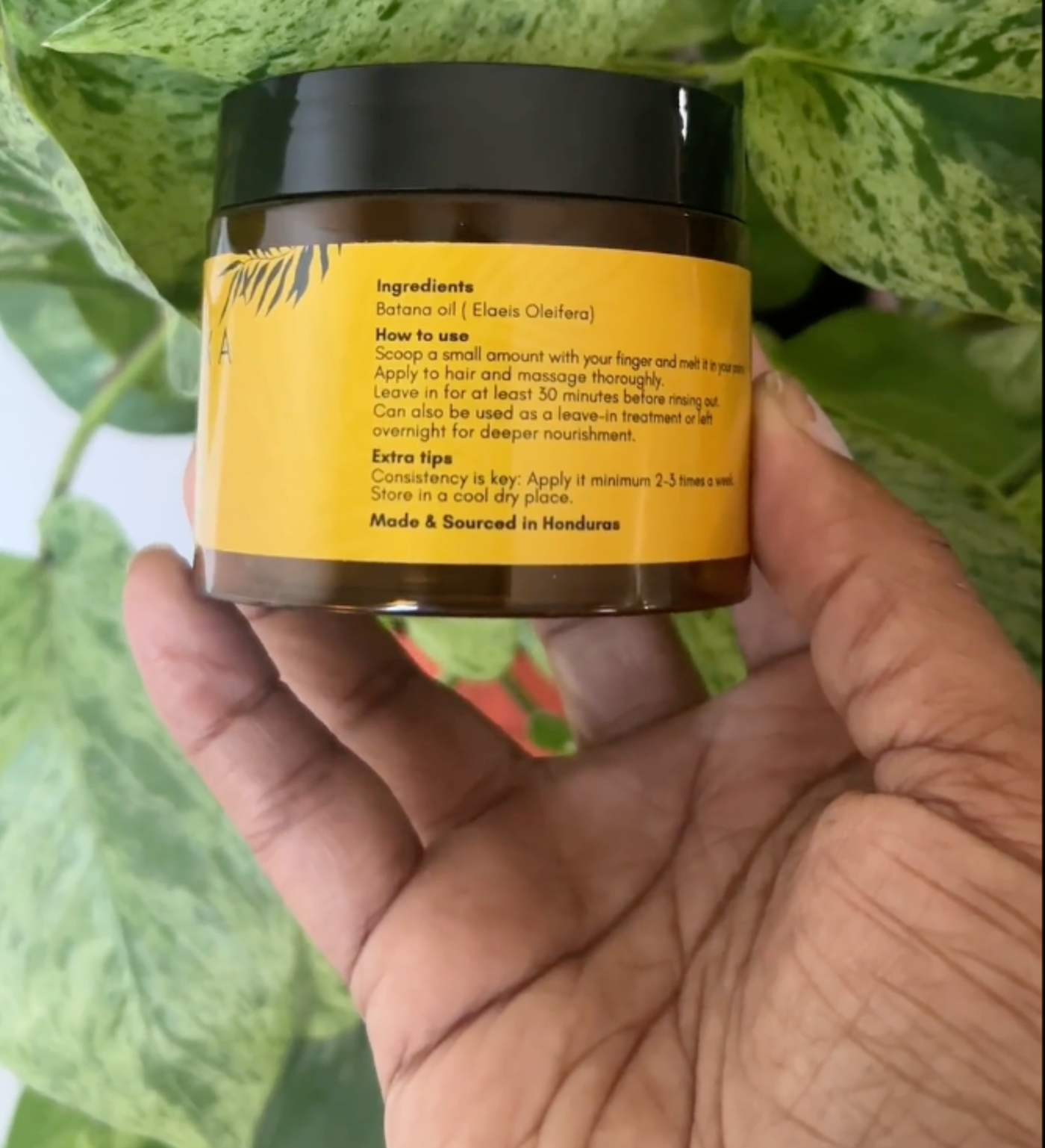Authentic Batana oil is derived from the rare fruit of the American palm tree and is traditionally hand-extracted.